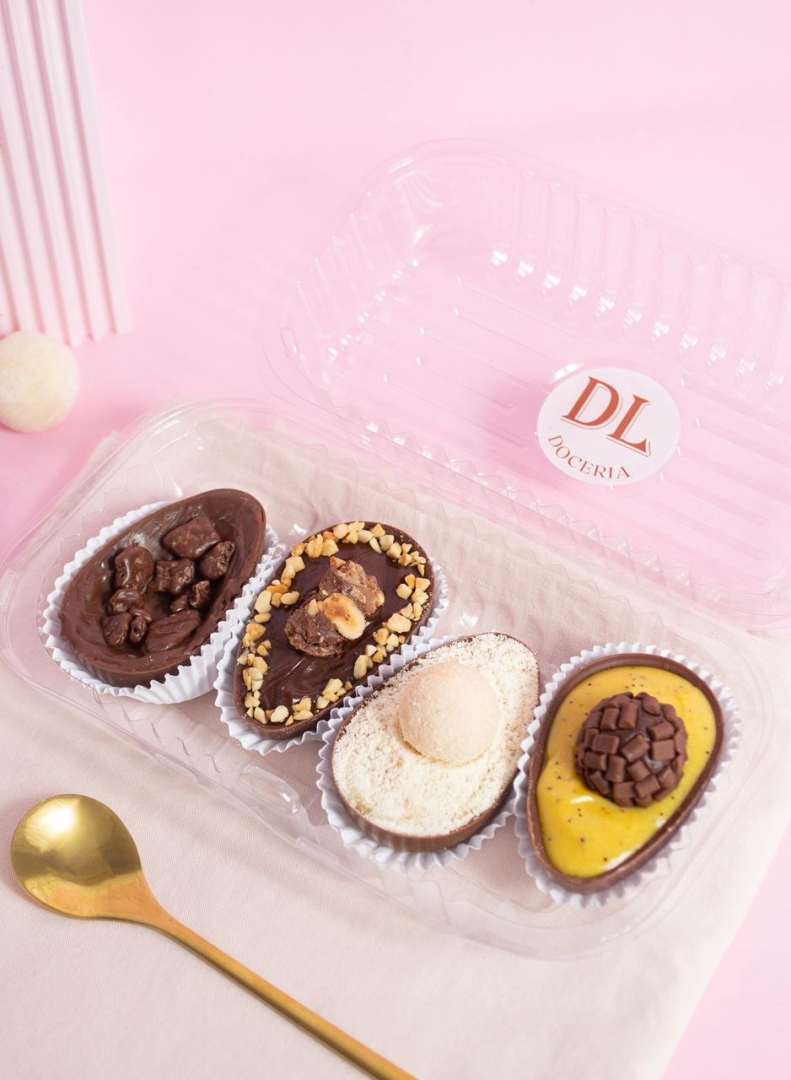 Preparados artesanalmente para deixar sua Páscoa ainda mais especial! Casca de chocolate Nobre ao Leite, recheada com brigadeiro de maracujá e finalizado com docinhos de brigadeiro gourmet. 400g