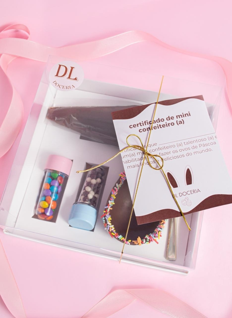 Diversão e sabor garantido!! Perfeito para soltar a criatividade, o Kit Confeiteiro vem com 1 casca de 50g de chocolate nobre ao leite, 2 acompanhamentos deliciosos para decorar e Brigadeiro trufado de chocolate. 170g