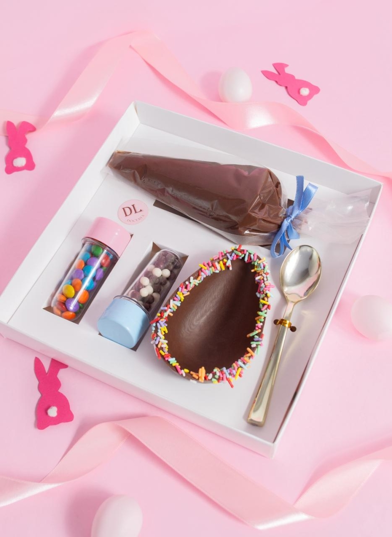 Preparados artesanalmente para deixar sua Páscoa ainda mais especial! Casca de chocolate Nobre ao Leite, recheada com brigadeiro de maracujá e finalizado com docinhos de brigadeiro gourmet. 400g