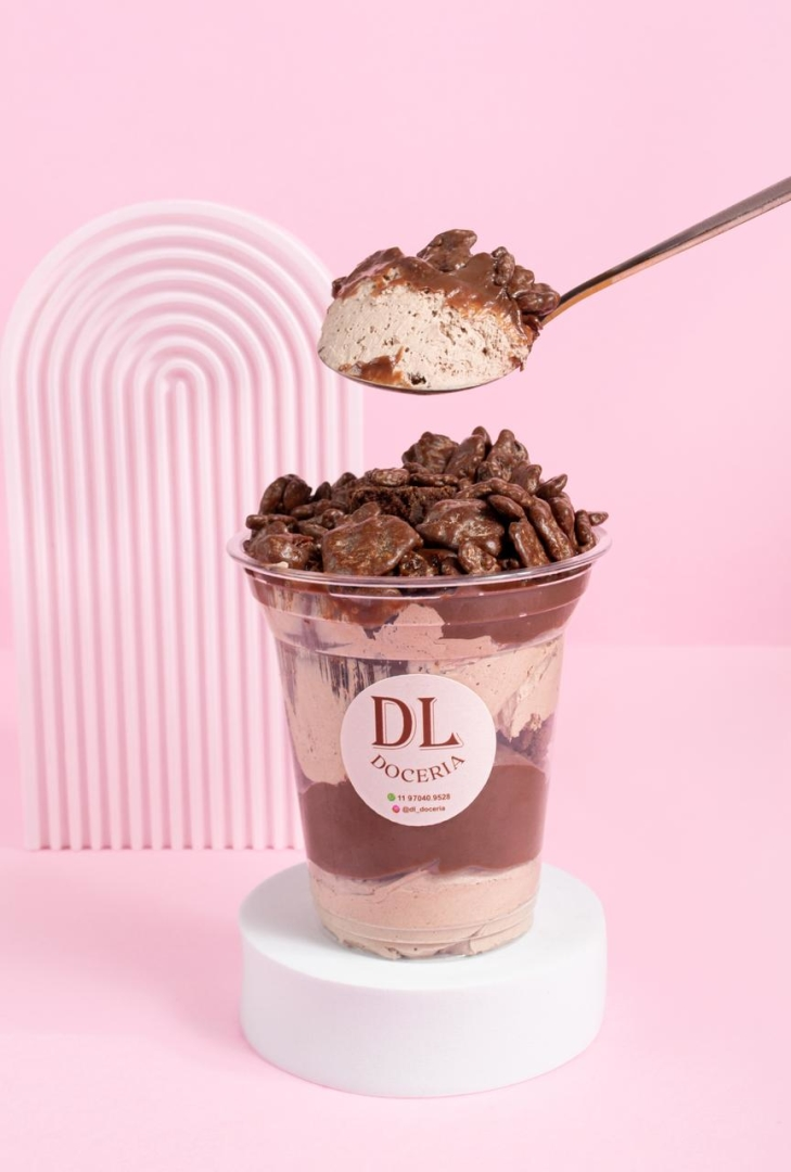 Camadas de brigadeiro trufado de chocolate cremoso, brownie e mousse de Ninho. 200 ml