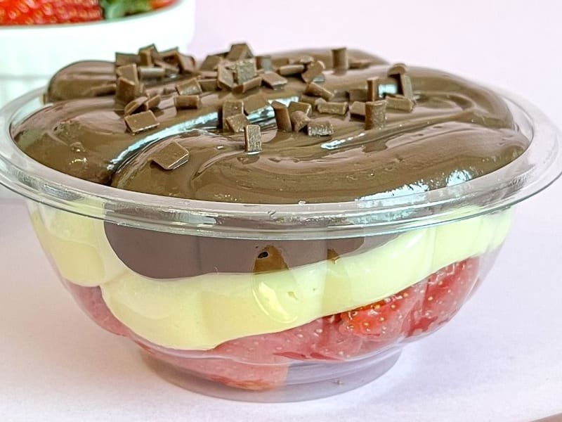 Brigadeiro trufado, brigadeiro branco, morangos frescos e confeito de chocolate250ml