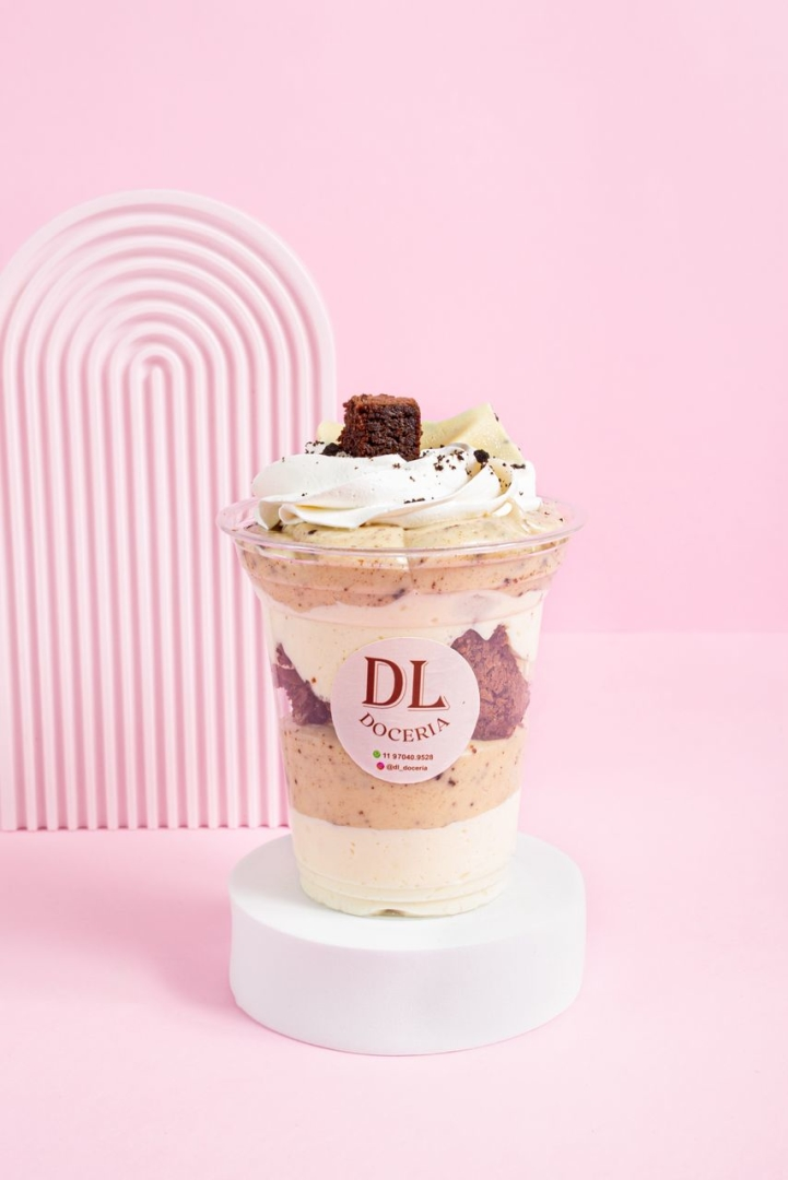 Camadas de brigadeiro trufado de chocolate cremoso, brownie e mousse de Ninho. 200 ml